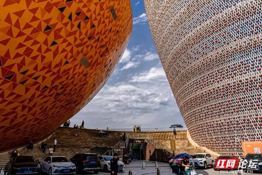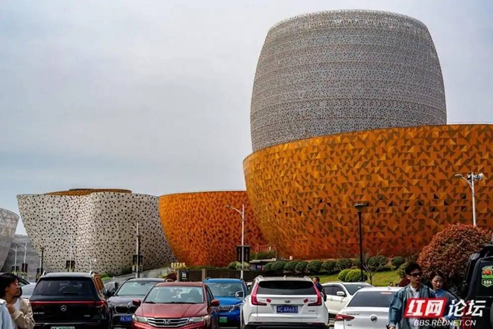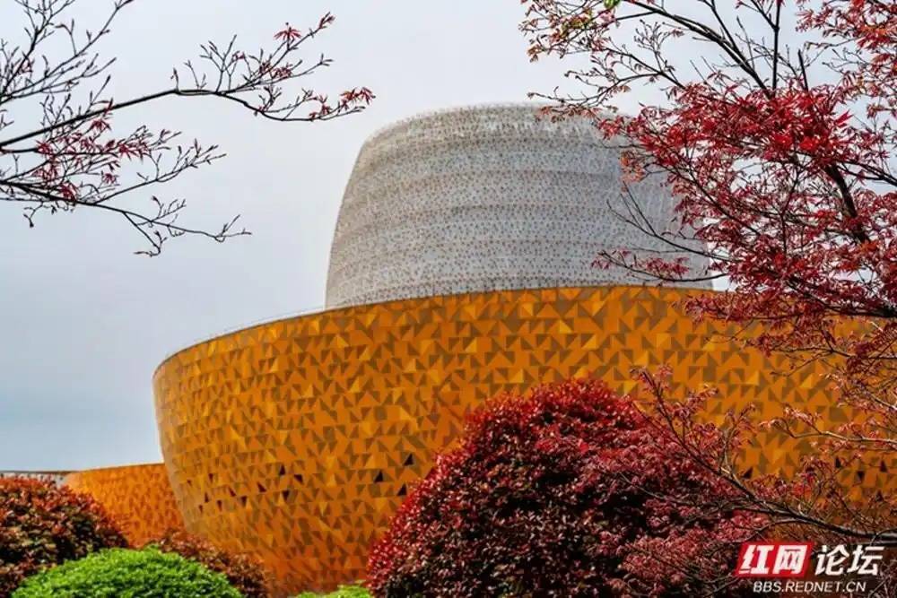 初见醴陵市瓷谷,便被这一组如瓷器般温润而庞大的建筑群所震撼。镜头下,明艳的鹅黄与深沉的赭红交织,在蓝天白云的映衬下,勾勒出如梦似幻的几何线条。近处的红枫与繁花,为这硬朗的工业美学平添了几分春日的柔情。漫步其间,仿佛行走在一件巨大的艺术品中,每一处转角都能邂逅光影留下的陶瓷印记。(图文/罗学立)